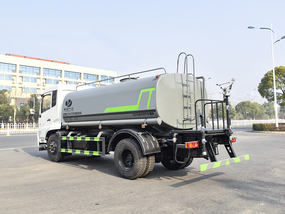 東風天錦 12 噸灑水車產品標配前噴(鴨嘴)、后沖、后灑、側噴、后置式工作 平臺,平臺上配置綠化水炮(可 360°旋轉,既可以調成柱狀,也可 以調成霧狀,更可以調成直沖狀、大雨、中雨、小雨、毛毛雨),配 備優質大功率專用灑水泵(可自吸自排,可從河里或池塘抽水到罐體), 取力器,雜物過濾網,消防接口,自流球閥系統、取力器、球閥、濾網 均為國家標準產品,主管道加粗,法蘭墊、法蘭盤加厚,大通徑球閥。 整體具備性能優良安全可靠、效率高、流量大、維修方便等特點。