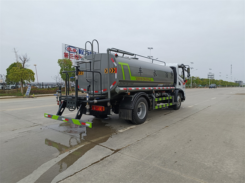 湖北盈通灑水車產品標配前噴(鴨嘴)、后沖、后灑、側噴、后置式工作 平臺,平臺上配置綠化水炮(可 360°旋轉,既可以調成柱狀,也可 以調成霧狀,更可以調成直沖狀、大雨、中雨、小雨、毛毛雨),配 備優質大功率專用灑水泵(可自吸自排,可從河里或池塘抽水到罐體), 取力器,雜物過濾網,消防接口,自流球閥系統、取力器、球閥、濾網 均為國家標準產品,主管道加粗,法蘭墊、法蘭盤加厚,大通徑球閥。 整體具備性能優良安全可靠、效率高、流量大、維修方便等特點。 9.3方華神T3云內150匹馬力灑水車產品配置