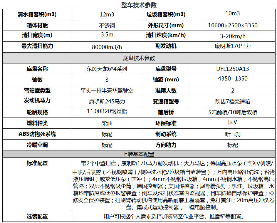 東風天龍后雙橋洗掃車12水10塵-東風大型洗掃車價格報價-湖北盈通