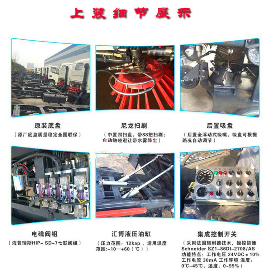 9. 東風8方洗掃車左右立掃為單掃盤,減少了掃刷的數量和掃刷消耗量,能降低使用成本。掃刷上加裝噴水裝置,用于噴霧降塵。左右立掃分開控制,可實現右掃和全掃等不同的作業模式。