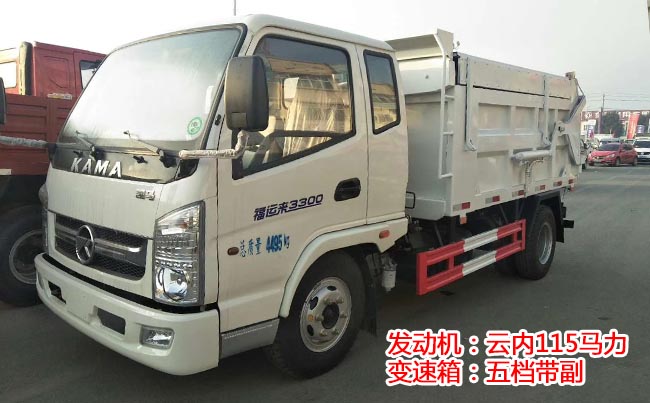凱馬福運來對接式垃圾車,軸距3.36米.福運來1830排半駕駛室,云內115馬力,萬里揚5檔帶副變速,200mm雙層大梁,1069后橋,7.50R16鋼絲胎,斷氣剎,方向助力,ABS,原廠空調。