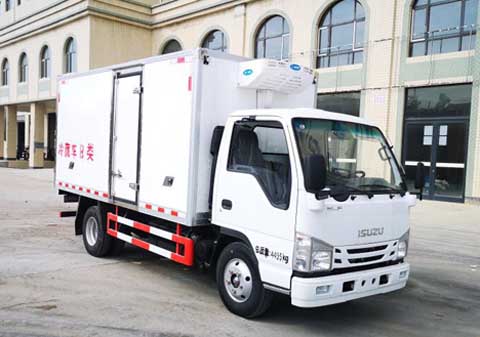 | 專用裝置為制冷裝置,用來維持冷凍或保鮮的貨物溫度的封閉式廂式運輸車;車廂頂部封閉不可開啟。防護材料:Q235,連接方式:左右側面均與箱體底面采用焊接連接, 后部防護與車架采用焊接連接,后防護斷面尺寸(mm):50×100,后部防護離地高度(mm):400。選裝廂體右側無側開門的結構的廂體;選裝其它相同功率的制冷機組。裝液壓制動系統時,ABS及其控制器型號/生產企業對應關系為:APG3550500A/浙江亞太機電股份有限公司,CM4YL/廣州瑞立科密汽車電子股份有限公司;裝氣壓制動系統時,ABS及其控制器型號/生產企業對應關系為:CM4XL-4S/4M/廣州瑞立科密汽車電子股份有限公司;發動機凈功率為87kW,發動機型號4KH1CN6LB,油耗值為11.3L/100km; |