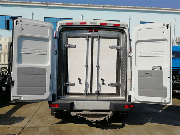 依維柯短軸冷藏車選裝配置:通風(fēng)槽,溫濕度顯示記錄儀,微型打印機(jī),選裝車廂內(nèi)膽形式等