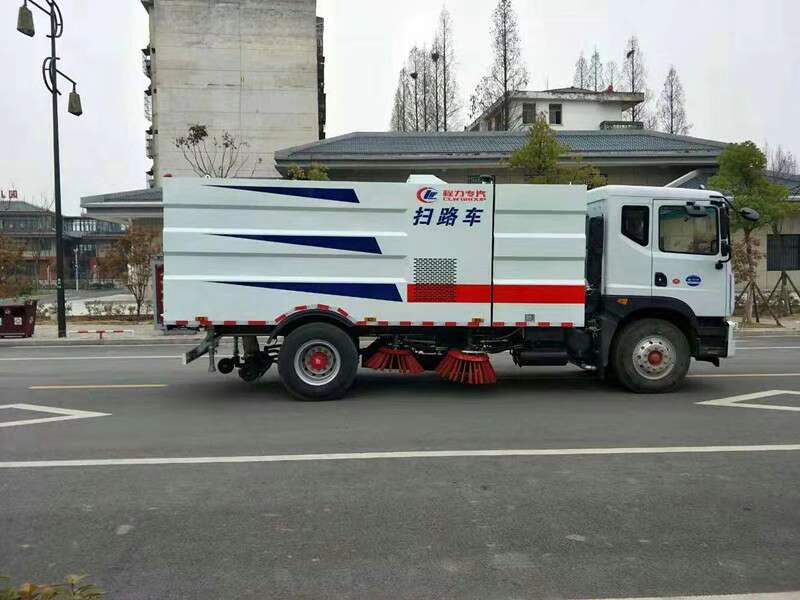 1. 采用吸掃結(jié)合的方式收集垃圾,濕式除塵、電液控制,液壓傾翻卸料的作業(yè)方式對路面進(jìn)行清掃作業(yè)。