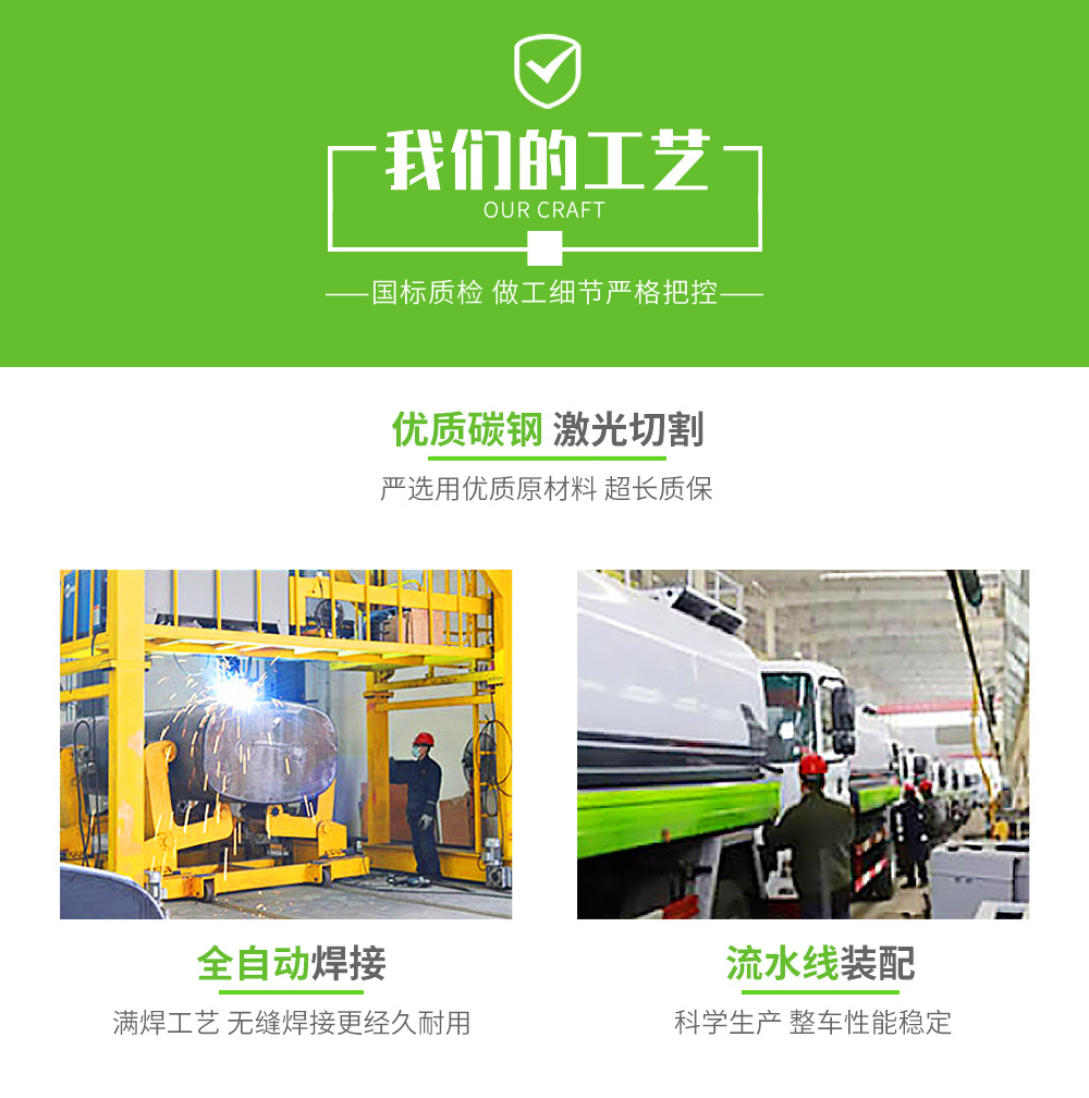 東風T5底盤后雙橋19噸灑水車采用優勢武鋼產碳鋼板制作,水壓封頭自動焊接,內部2-5道防浪沖擊板,配品牌大功率灑水泵,流量30-60噸每小時,壓力大流量強,帶樹脂透明液壓計,管道采用無縫鍍鋅鋼板連接,閥門采用鋁合金和不銹鋼材質,2道防銹底漆2道面漆,面漆采用烤漆工藝,整車采用流水線式生產模式,模塊化批量化生產工藝。