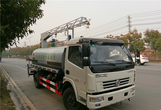 罐體為8立方圓形罐,罐體內部做防腐,帶加熱功能,前沖、后灑、側噴、高炮,抑塵噴灑桿(帶旋轉伸縮功能)。噴灑桿離地3.5-5米,后部平臺帶8KW副發電機組,罐體內部加兩個1.5KW電動馬達(帶攪拌功能)罐體噴漆上白下藍,平臺和噴灑桿藍色。遙控操作噴灑桿上下左右旋轉,國內知名品牌回轉支撐,大品牌油缸。。罐體外部做5CM+保溫層,加裝燃燒機,罐體帶加熱功能。可滿足零下0-30°工作環境。噴灑桿離地可伸縮:3.5-5米 。噴灑桿滿足360°旋轉,全自動遙控操作噴灑裝置。