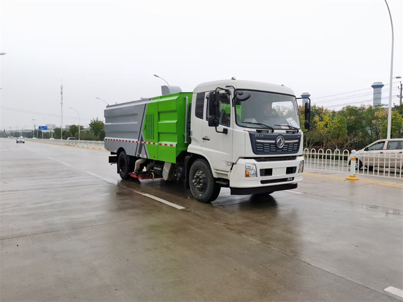 東風(fēng)天錦吸塵車產(chǎn)品特點(diǎn) 1.清掃吸塵車效率高,每小時(shí)作業(yè)面積 65000-90000m2,相當(dāng)于 40 名 環(huán)衛(wèi)工人作業(yè)。清吸率高達(dá) 99.3%,每平方米的灰塵量不超過 5g。 2.車輛配有冷暖空調(diào),液壓方向助力,右影像、倒車影像,工作音樂 喇叭。3. 采用離心離合器,避免發(fā)動(dòng)機(jī)帶載啟動(dòng),張緊輪方便調(diào)節(jié)皮帶的松 緊度,使皮帶更耐用 4. 采用“中置主吸盤+左右副吸盤+手動(dòng)吸盤”布置型式,或后滾掃, 可選配。5. 采用 CAN 總線控制,液晶屏顯示,駕駛室內(nèi)一鍵式操作智能化電控 系統(tǒng)。 6. 車輛右后方安裝手動(dòng)控制裝置,可在車外控制車輛實(shí)現(xiàn)主吸盤、左 右副吸盤、洗車、卸料等功能。7.整車箱體外形采用瓦楞形結(jié)構(gòu)外觀,箱體材質(zhì):Q235 碳鋼,箱體壁 厚:4mm。獨(dú)立水箱與垃圾箱成整體流線型,箱體受力均勻,結(jié)構(gòu)性能 強(qiáng),美觀。 8.清水箱內(nèi)設(shè)有低水位傳感報(bào)警系統(tǒng),無水時(shí)自動(dòng)報(bào)警,防止水泵缺 水損壞。并自動(dòng)停止工作。 9. 集塵箱自主研發(fā)三級(jí)降塵技術(shù),采用重力除塵,慣性除塵,濾網(wǎng)除 塵,并結(jié)合脈沖除塵技術(shù),既能將灰塵吸凈,又能防止濾網(wǎng)堵塞。 10. 車輛后部集塵箱安裝手動(dòng)吸口,可連接吸塵管直接手動(dòng)操作。11. 具有防污水箱后門開啟前傾翻卸料、防保護(hù)撐桿未放下收回已 傾翻的污水箱的安全鎖定裝置。