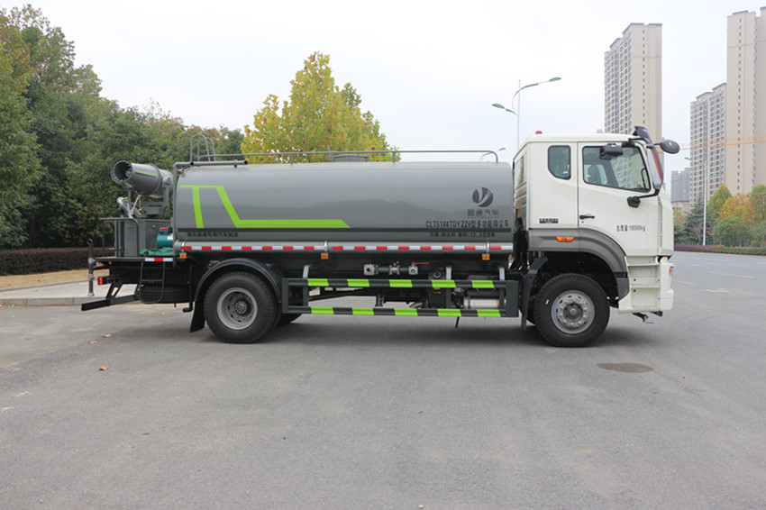 三.產品主要技術參數 序號 名稱 型號、規格 1 整車型號 CLT5184TDYZZ6 型多功能抑塵車 2 發動機型號 WP4.6NQ220E61 3 發動機馬力/功率 濰柴 220 馬力/162KW 4 發動機排量 4580ML 5 變速箱 法士特 8 檔(帶高低檔) 6 輪胎規格 10.00 鋼絲胎 7 軸距 4700 8 總質量 18000KG 9 整備質量 8200KG 10 額定載質量 9670KG 11 整車尺寸(長×寬×高) 8.6*2.5*3.2 12 罐體容積 15 方 13 燃料種類 柴油 14 排放標準 國六 15 水泵型號 60/90 16 罐體材質 Q235 碳鋼
