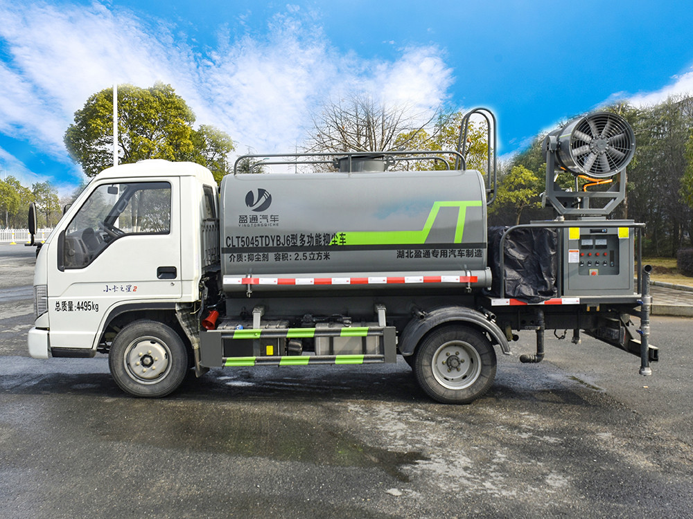 福田小卡 2.7 方抑塵車簡述 抑塵車又稱為綠化噴灑車、多功能灑水車、園林綠化灑水車。抑 塵車適合于各種路面沖洗,樹木、綠化帶、草坪綠化,道路、廠礦企業 施工建設,高空建筑沖洗。抑塵也可以作為運水車使用,最常見的車 型有綠化噴灑車、多功能灑水車、綠化灑水車幾大類。 我公司產品標配后對沖、后灑、側噴、后置式工作平臺,平臺上 配置綠化水炮(可 360°旋轉,既可以調成柱狀,也可以調成霧狀, 更可以調成直沖狀、大雨、中雨、小雨、毛毛雨),配備優質大功率 專用灑水泵(可自吸自排,可從河里或池塘抽水到罐體),取力器, 雜物過濾網,消防接口,自流球閥系統、取力器、球閥、濾網均為國家 標準產品,主管道加粗,法蘭墊、法蘭盤加厚,大通徑球閥。整體具 備性能優良安全可靠、效率高、流量大、維修方便等特點。